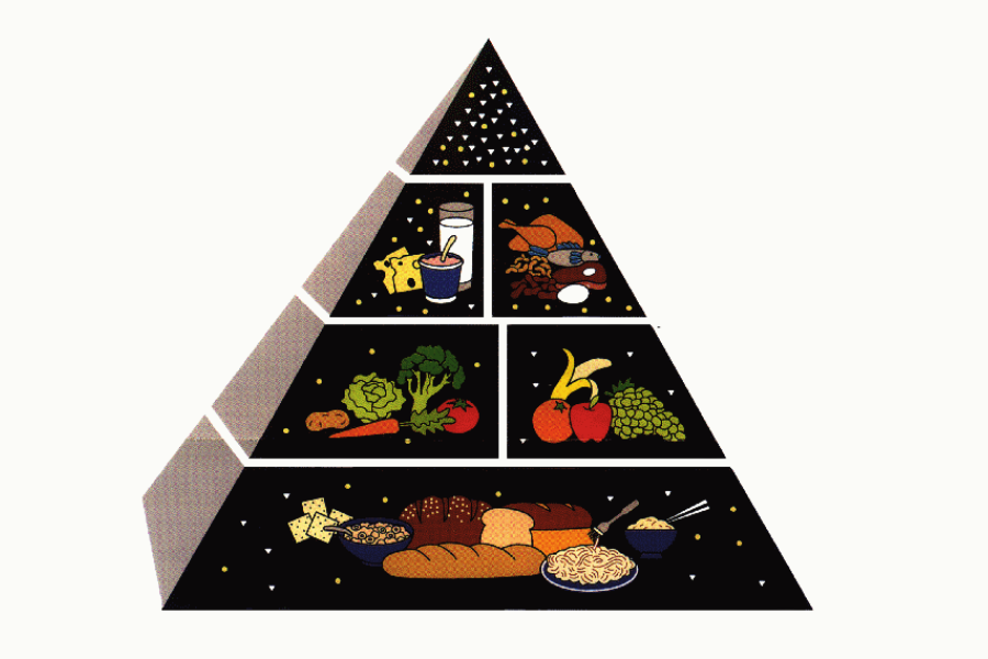 Fruits and vegetables comprised the second tier, which is in line with research that shows fiber and micronutrient-rich diets lead to lower risk of developing chronic diseases. Below that were proteins and dairy which suggest moderation. sweets and fats were put in the middle to be consumed "sparingly." From a scientific point of view the simplicity of the pyramid is both its benefit as well as its drawbacks. It didn't clearly distinguish: