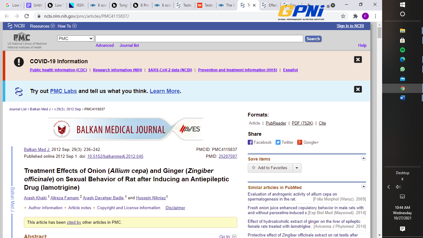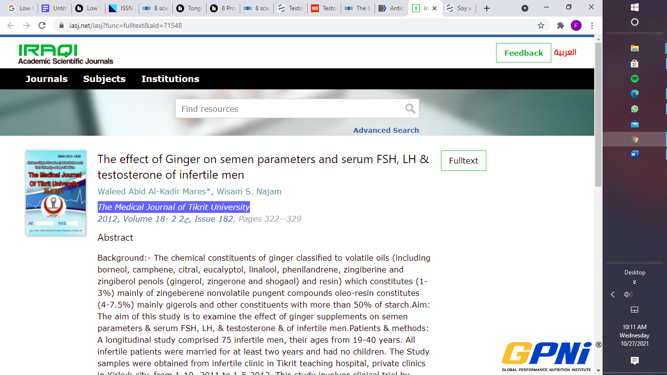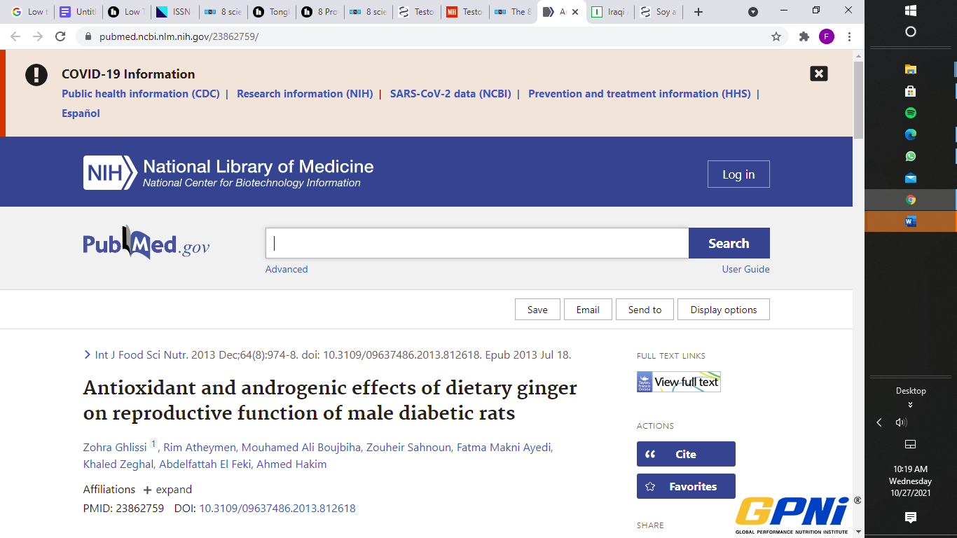 Furthermore, researchers at the NCIB found that ginger increased testosterone and antioxidant levels in diabetic rats after just 30 days of supplementation.