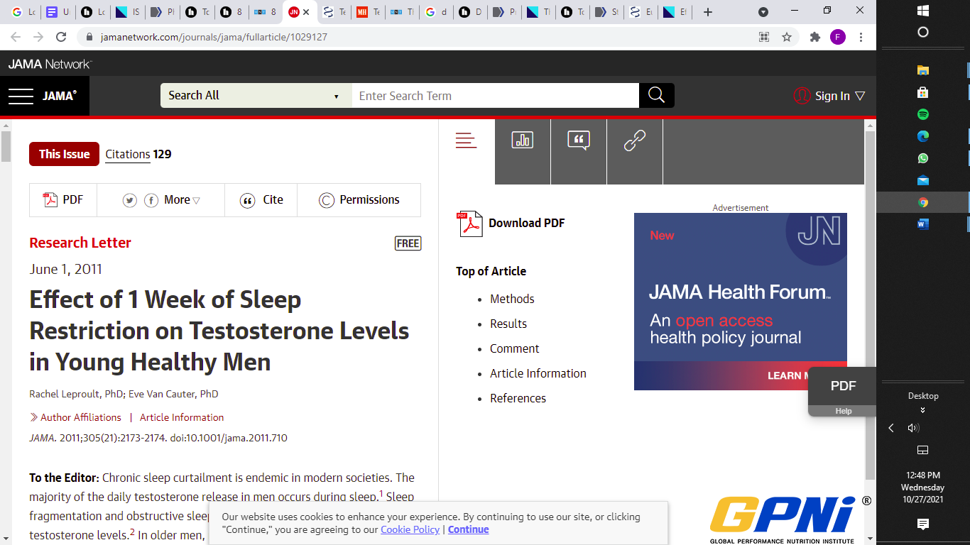 Quality sleep: Poor sleep can adversely affect the body's hormone and chemical levels, including testosterone. Researchers from the University of Chicago discovered that men's testosterone levels may decrease if men don't get enough sleep. In their study, ten men who were subjected to restricted sleep for one week had a daytime testosterone level drop of about 15%.