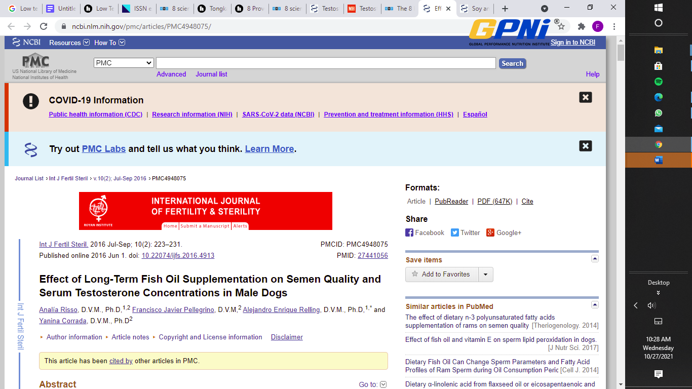 Fish oil has not been proven to increase testosterone levels in humans, but an animal study reveals it can increase semen quality and serum testosterone levels in dogs by improving their fatty acid profiles. A similar result was also discovered in rats.