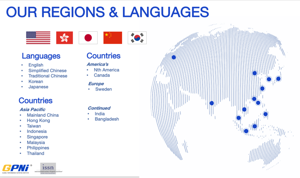 With the English language double certification Sports Nutrition Specialist (SNS) and the Advanced Sports Nutrition Coach (ANSC), the GPNi® portal has students based all over the globe. All mingling together to learn, network, and make friends with our “live” sessions and chat group through online Skype “classroom.”