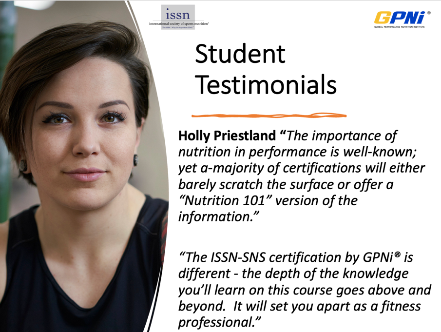 Launching December 10th, 2021, on offer is the all-new 100% on-demand version for the ISSN Sports Nutrition Specialist (SNS). Study at your own pace, your time-zone though together with complete customer and nutrition monthly accountability online Zoom classrooms with one of our qualified global performance nutrition experts.