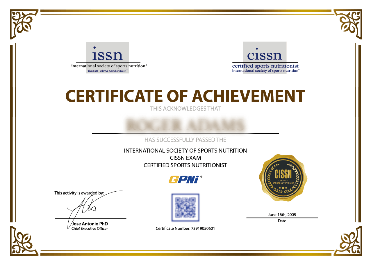 First and foremost, to save any confusion out there. The CISSN Level-2 Masters course and certification by the GPNi® is the Certified Sports Nutritionist (CISSN) by the International Society of Sports Nutrition (ISSN).